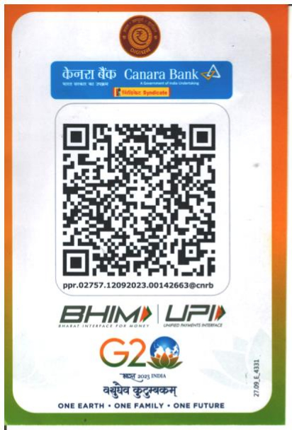 Via Google pay/Phone Pe/PAYTM using the code attached.